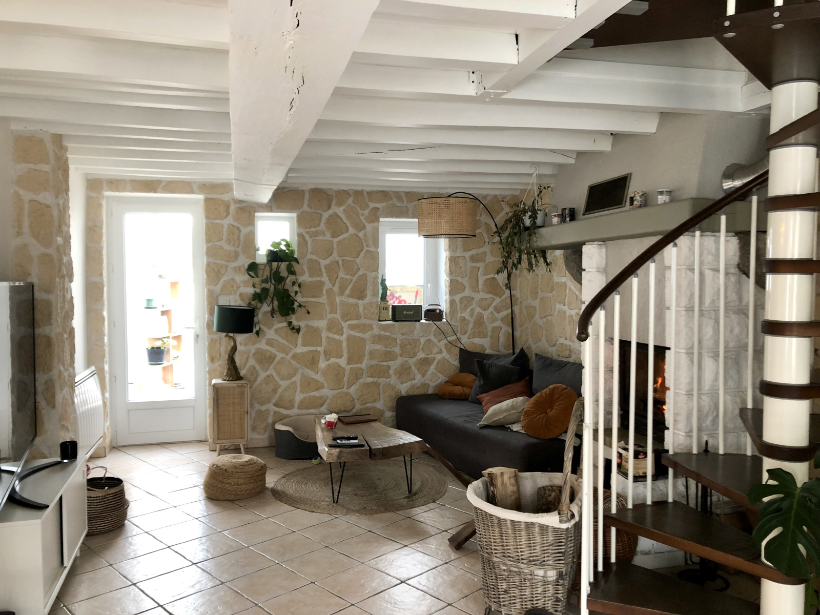 - Entrée sur pièce de vie (cuisine ouverte, séjour et salon avec cheminée), véranda et accès au jardin