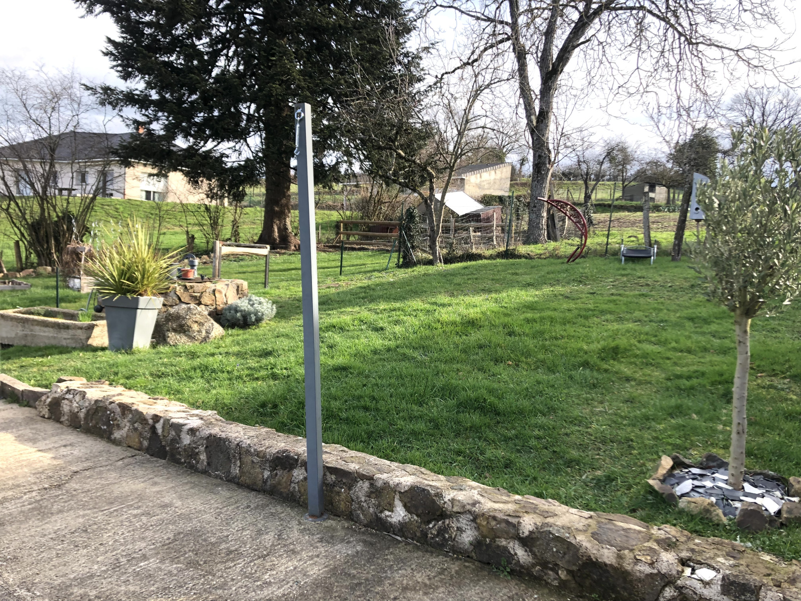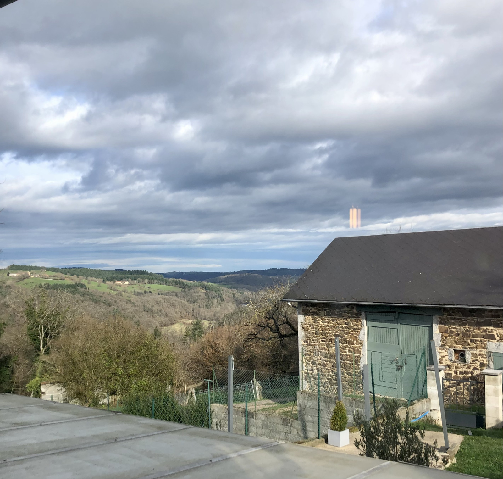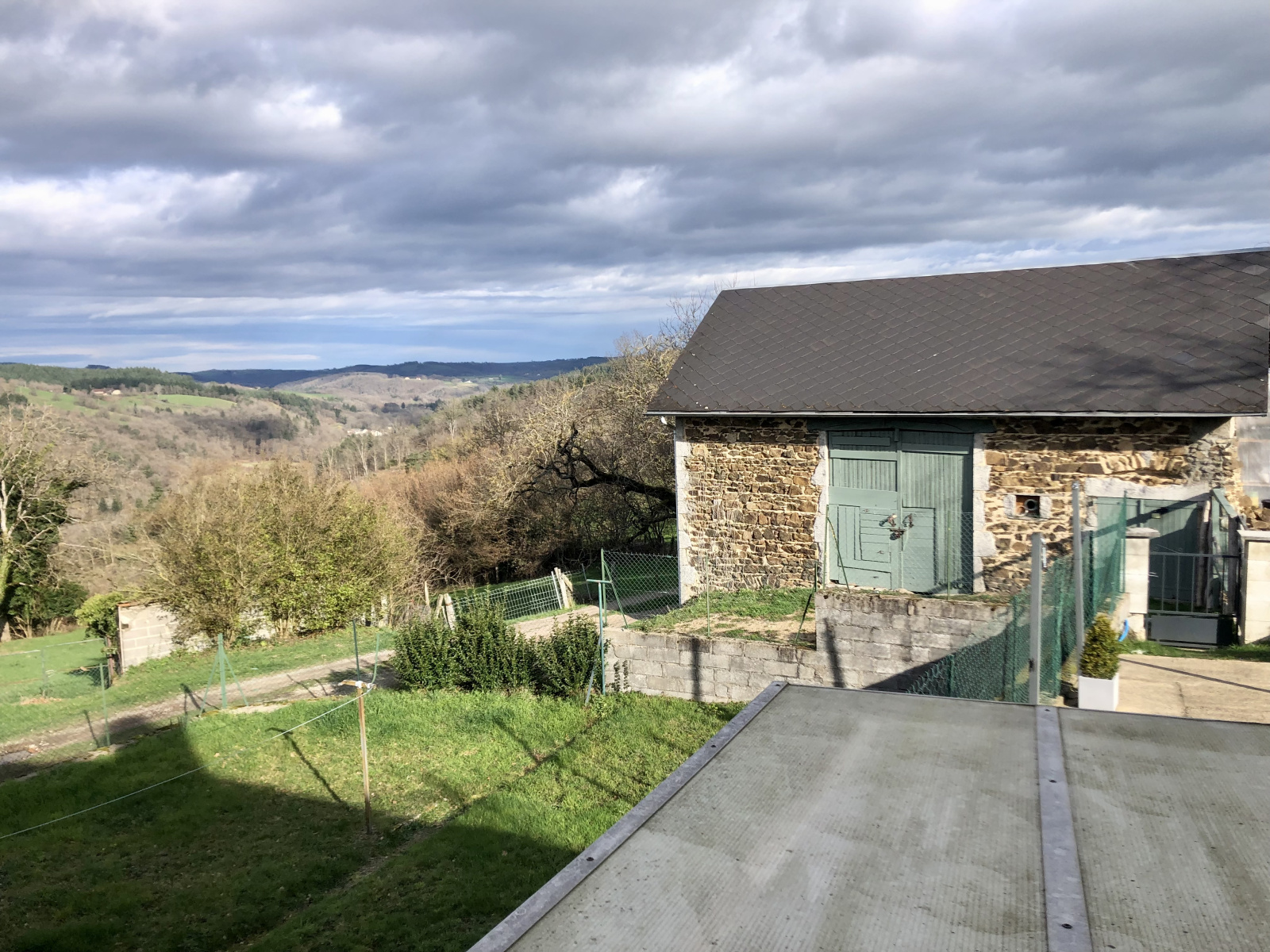 - À l'arrière de la maison : grand jardin avec vue, grange avec toiture refaite (garage, bûcher et remisage)
