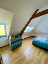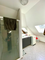 - Etage (mansardé) : 3 chambres, salle de douches et wc