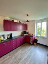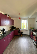 - RDC : entrée sur pièce de vie spacieuse : cuisine ouverte sur salon / séjour (total environ 58 m2), wc