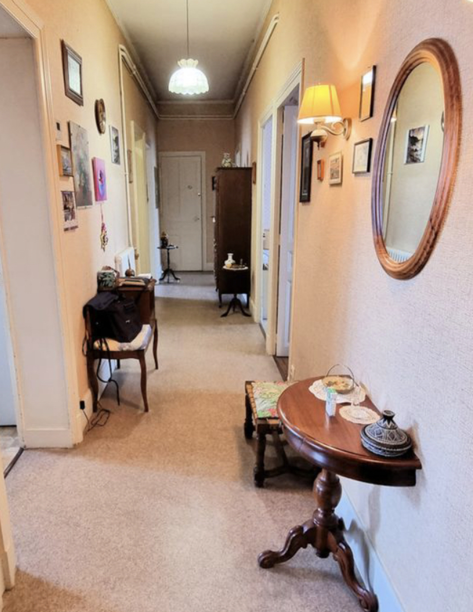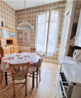 - Entrée (avec placard) sur couloir de distribution des pièces, cuisine séparée avec porte de communication à la pièce voisine, séjour, salon, 3 chambres, salle de bains, wc